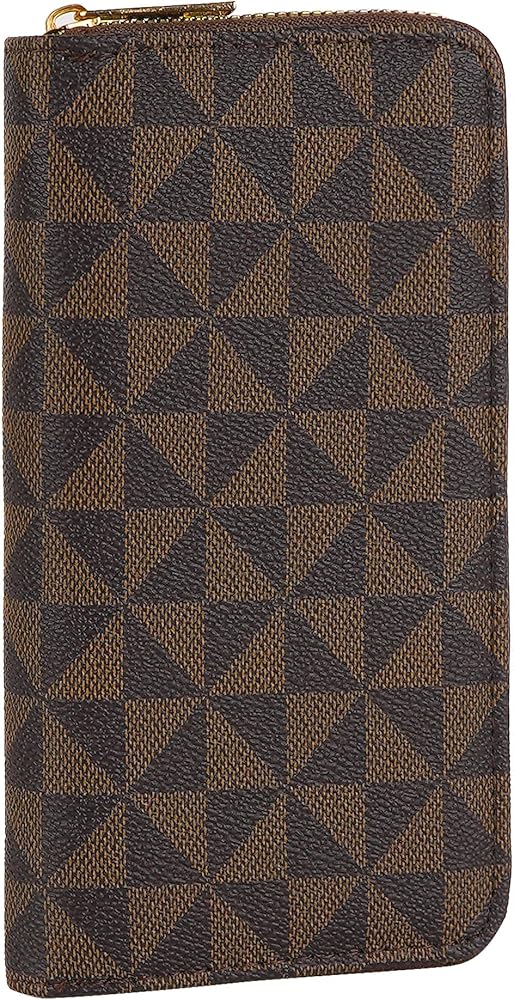 Add style to your essentials with this Geometric Plaid Vegan Leather Wallet, a blend of elegance and functionality. Inside are multiple card slots, phone storage sections, paper cash sections, small zip pocket, great for carrying various everyday essentials from cellphone to cash to coins.