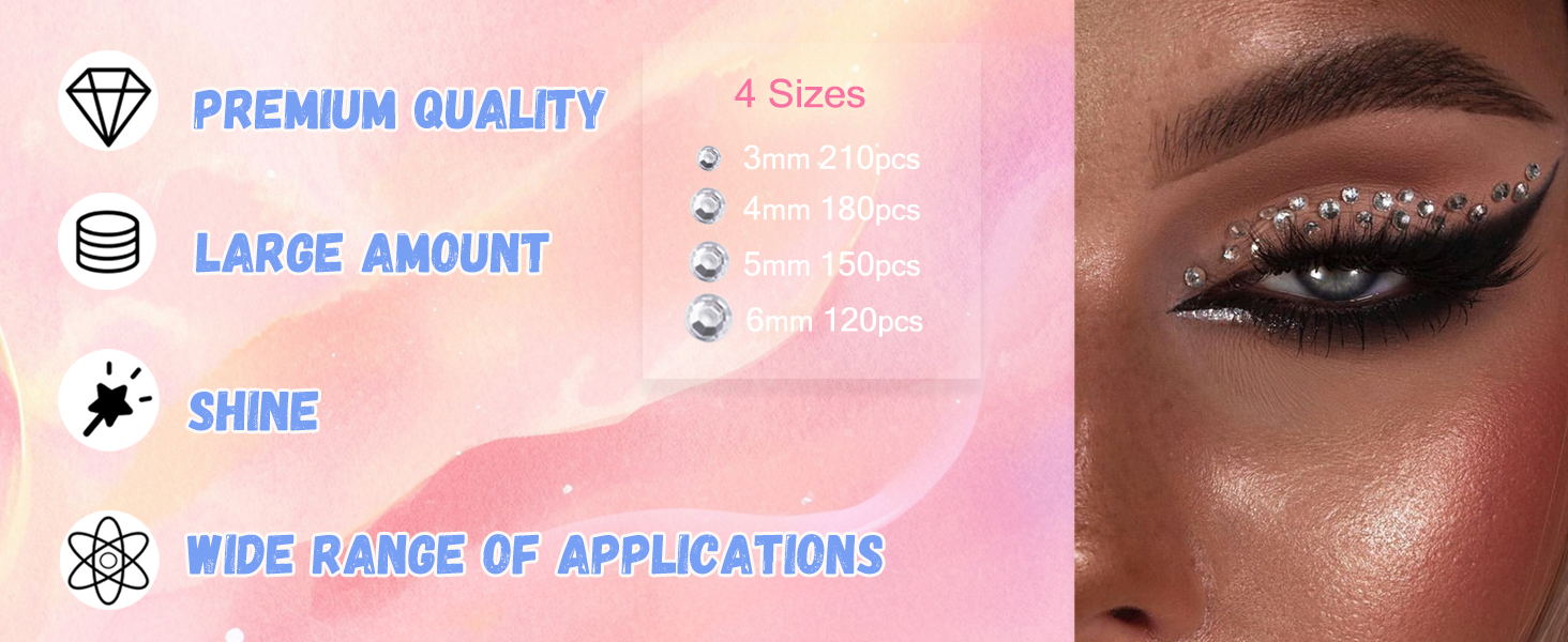 💎【Fairy Accessories-Durable and Reusable】: Each body glitter face jewels for makeup is backed with glue. The face glitter rhinestones for makeup can be used over and over again. When the glue dries, rhinestones can be used again with eyelash glue.