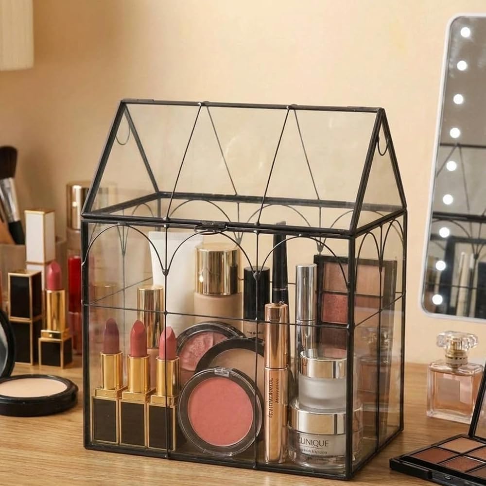 Charming Vintage Design Plant Terrariu: Inspired by classic Victorian greenhouses, this geometric glass terrarium features a unique house shape and elegant golden accents, adding vintage charm to any space. The side-opening latch allows for easy maintenance while enhancing the display, making it ideal for ferns, small tropical plants, or miniature fairy gardens
