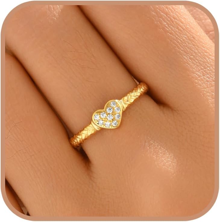 Design:This heart ring's packed with romantic charm: a plump heart locks in that flutter of infatuation, CZ glints like stardust to make love shine brighter. The braided band tangles up threads of devotion, nodding to ‘tying our hearts as one'—weaving lifelong affection into this band, turning deep love into a gentle, tangible thing