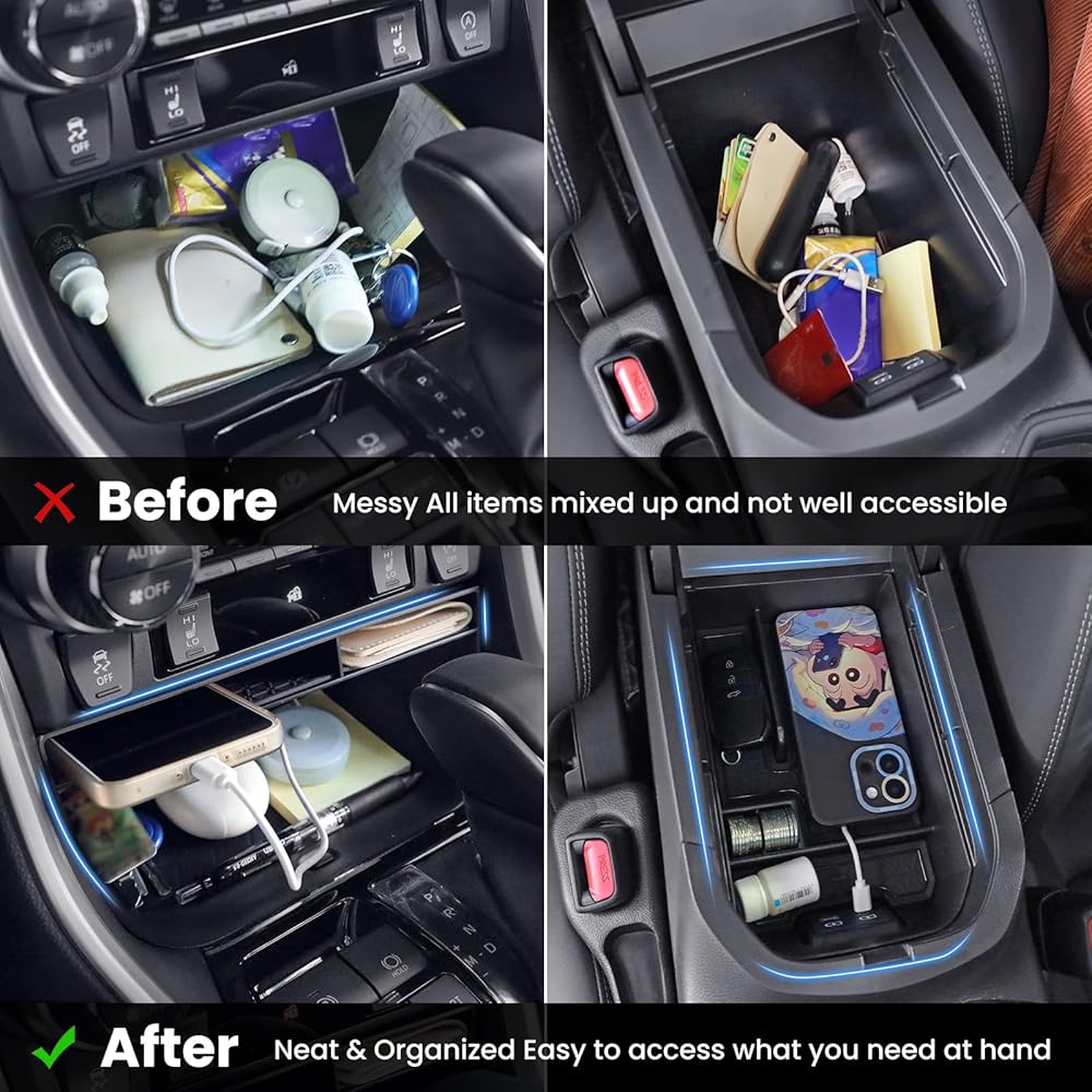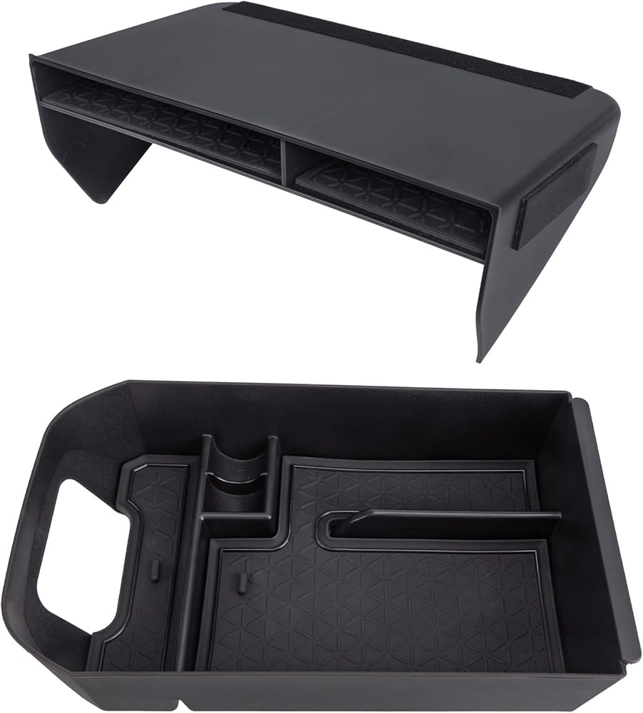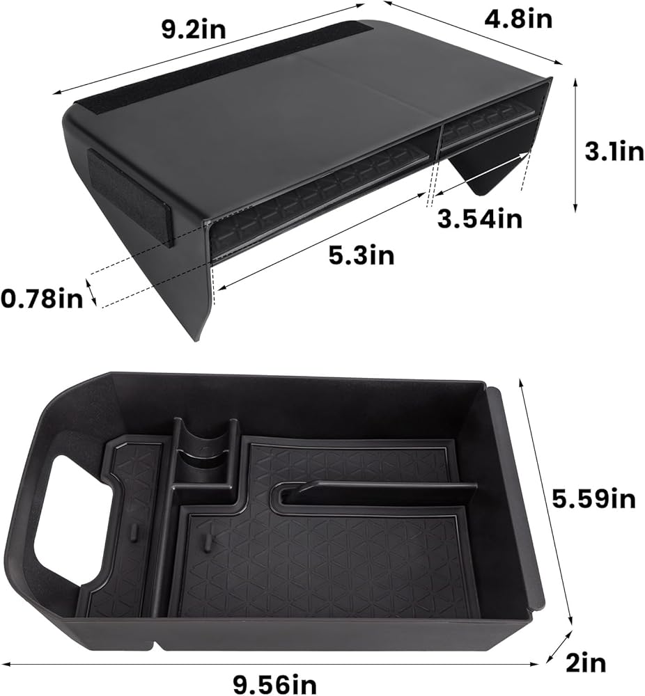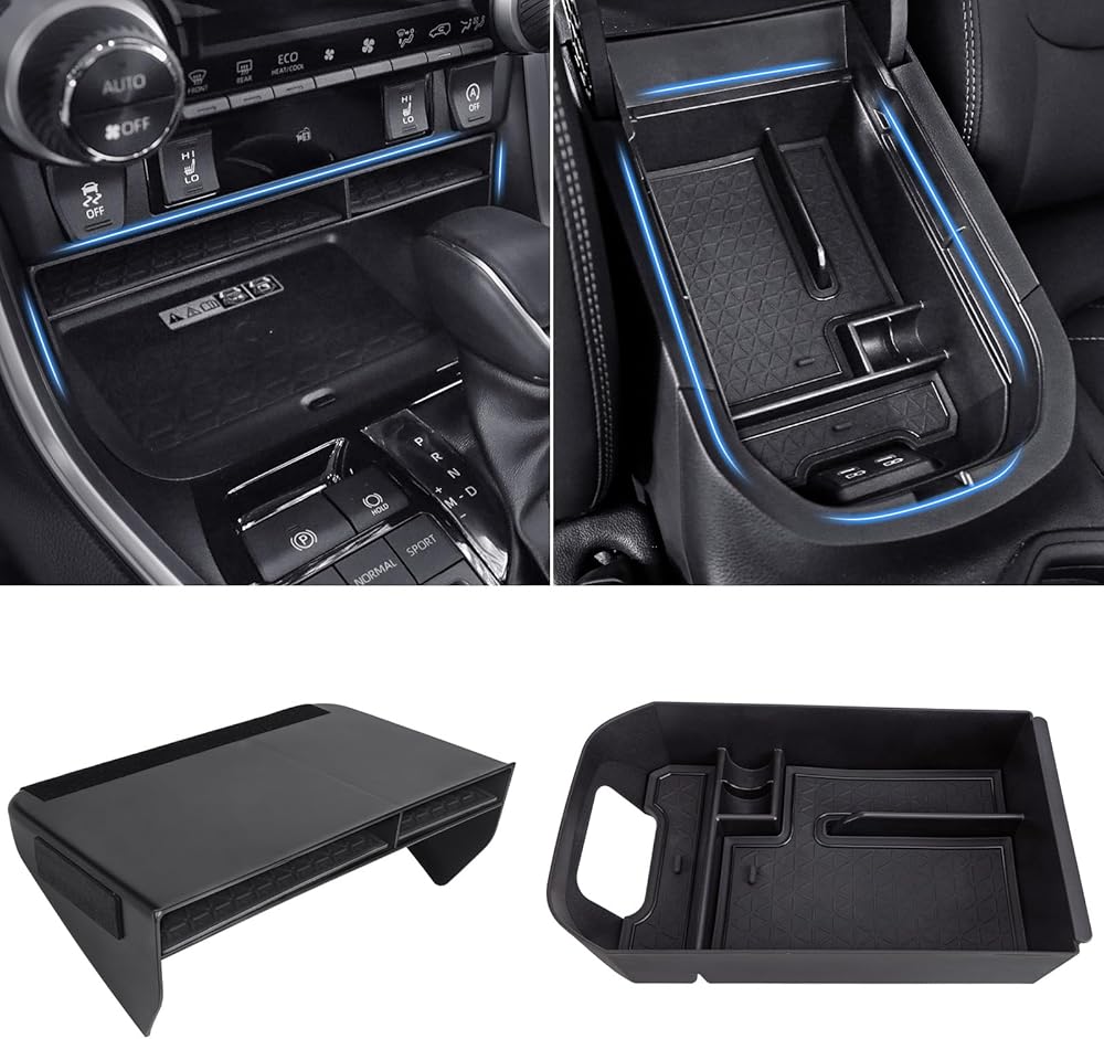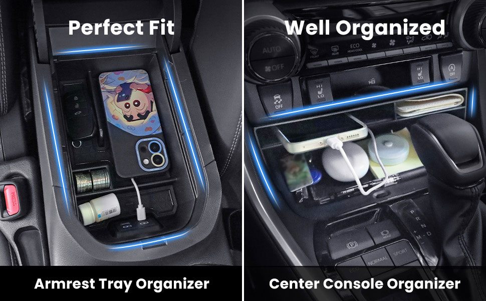 ARMREST TRAY: Dividing the center console into two layers adds an extra layer of storage space, you can put some items that you need to reach frequently on the top, and the space underneath for infrequently used items.