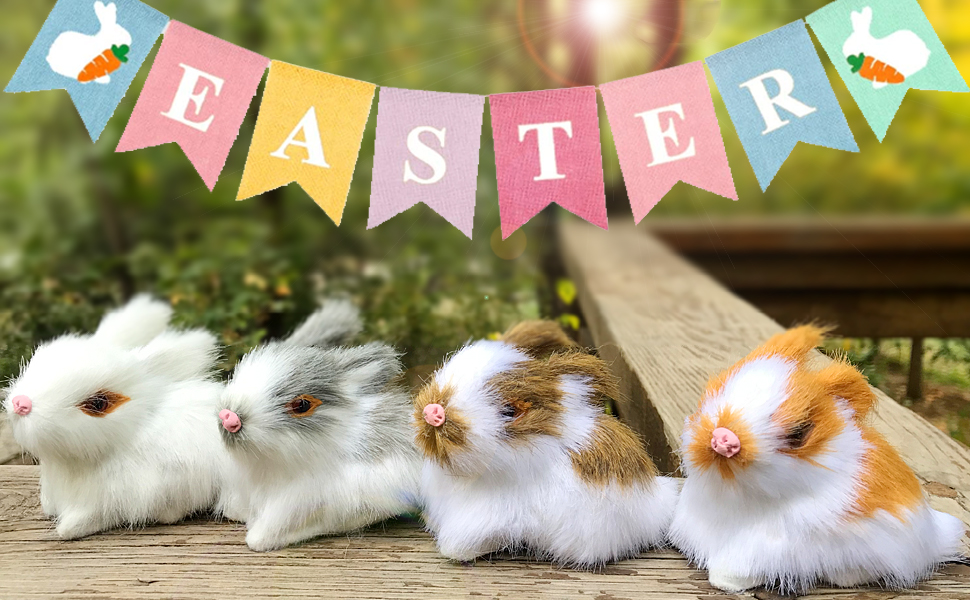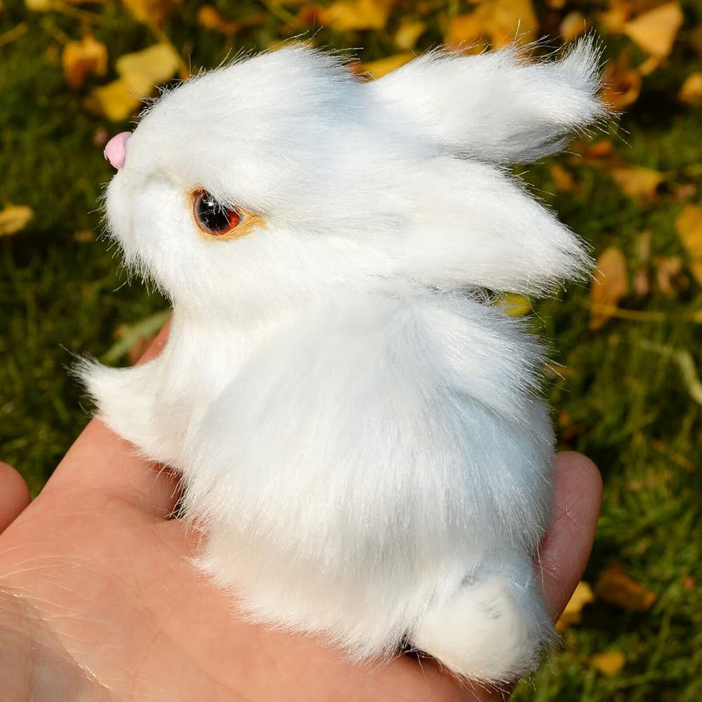 These mini rabbits are beautifully hand-crafted by Faux fur covered over a hard plastic mold. Adorable and realistic collectible will be a great addition to your Easter decoration for desk, bookcase or cabin.