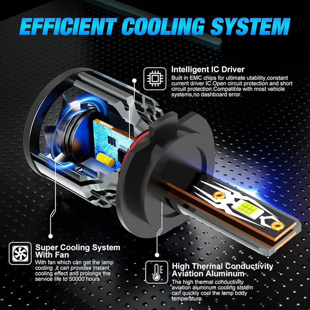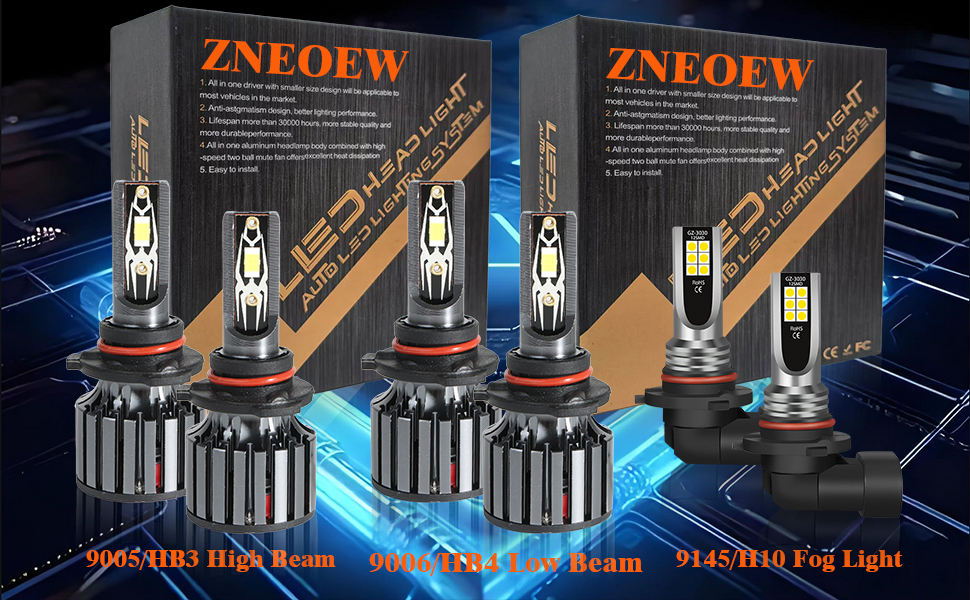 >50000 HOURS LIFESPAN: ZNEOEW's 9005 9006 ligth bulbs feature a cold-pressed aluminum heat sink and a 15,000 RPM cooling fan, which together provide an efficient and reliable cooling system, significantly extending the lifespan of the bulbs to up to 50,000 hours.