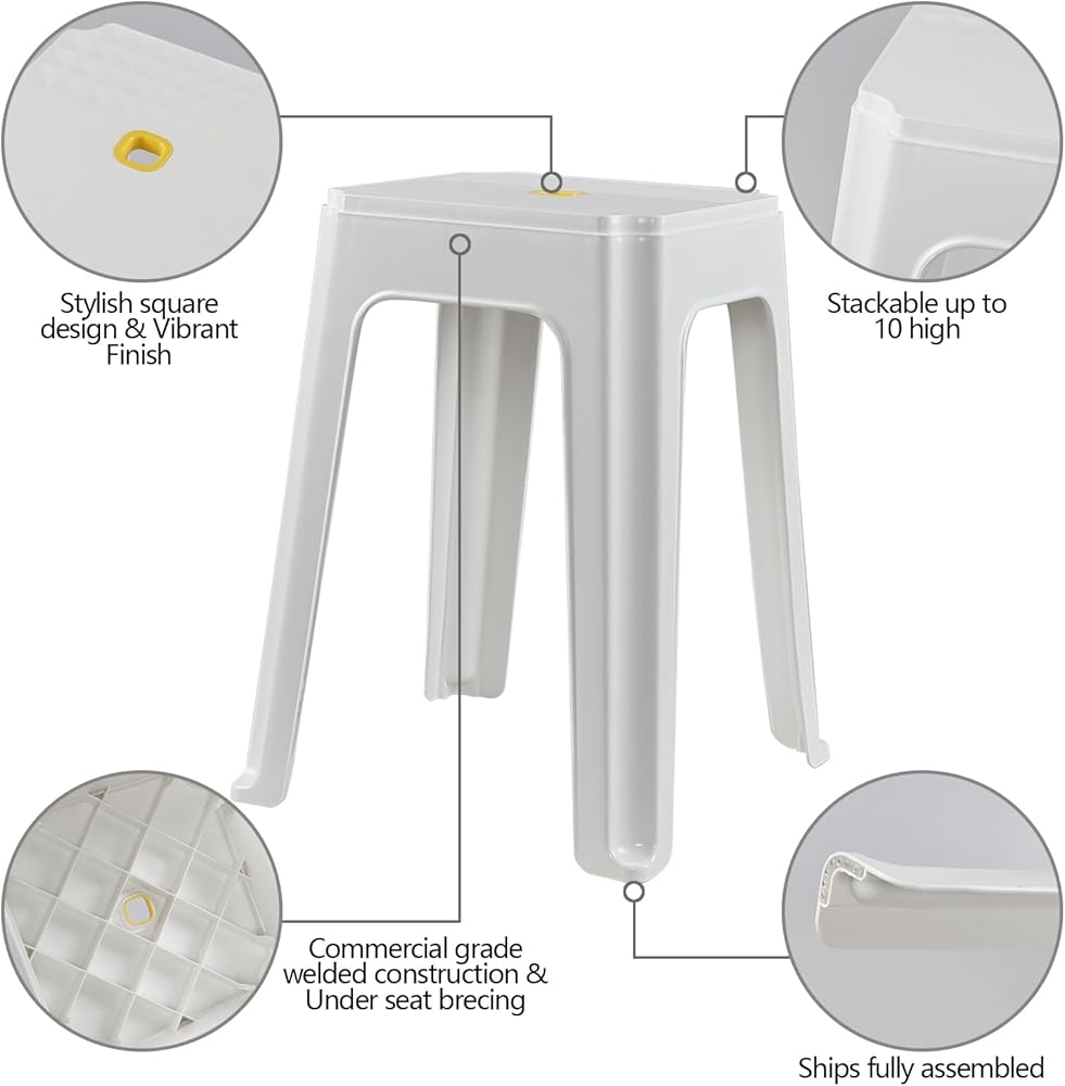 The stackable design of these stools makes products easy to store and does not take up too much space, providing ample mobility, saving space, and maintaining cleanliness