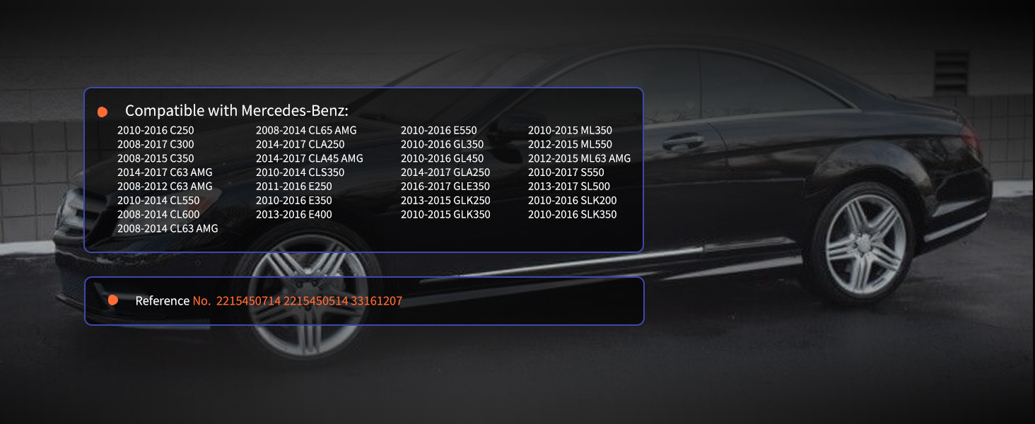 Part Number: Direct replacement for OE part numbers 2215450714 2215450514 33161207. Verify this number matches your original component to ensure compatibility and proper function