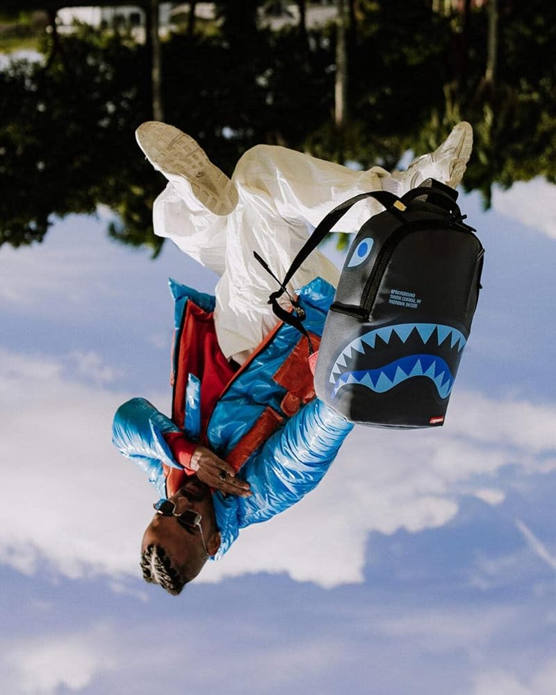 Dimensions: 18" x 6" x 11.5" Front zipper pocket Side pockets Zippered Stash pocket Separate velour sunglass compartment Ergonomic mesh back padding Adjustable Straps for custom sizing Gold zippers with metal hardware Metal "Sprayground Authentic" badge Slide through back sleeve connects to carry-on luggage to free your hands