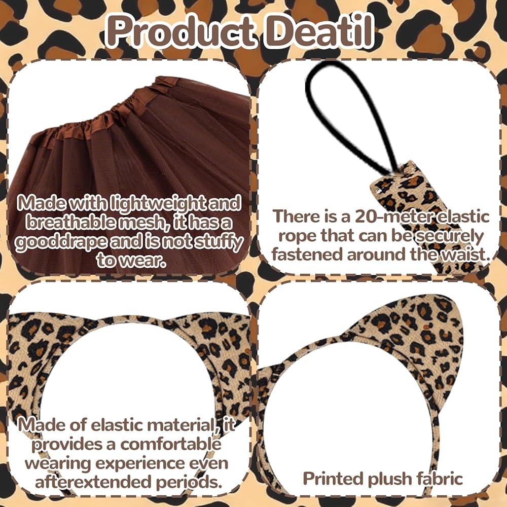 It can be combined to create a complete cheetah look, or the individual pieces can be separated and mixed and matched with everyday clothes. For example, the headband can be paired with casual wear to create a sweet and cool style, while the tail and bow tie can add wild details to the outfit. Its practicality far exceeds that of a single outfit.