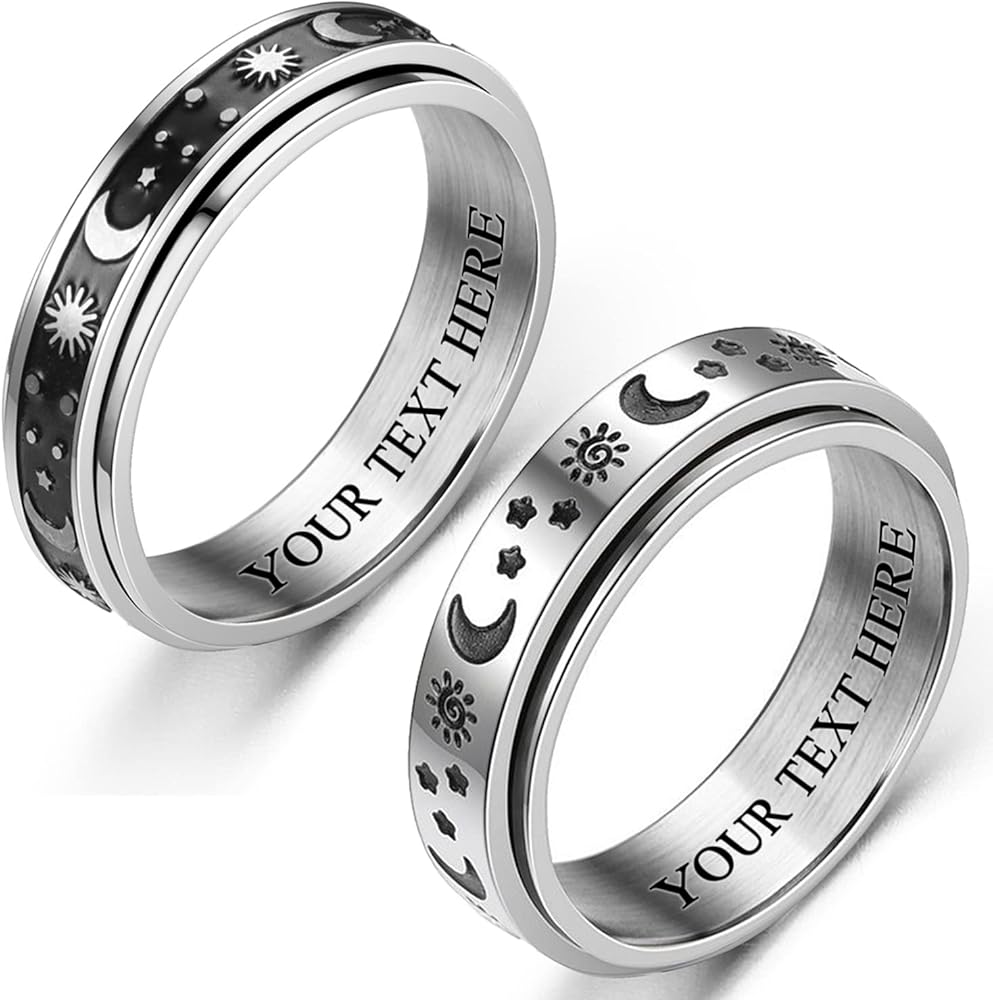 2PCS Matching Promise Rings for Him & Her, Custom Engraving Personalized Ring, Retro Spinner Fidget Ring for Wedding for Couple & Best Friend (2 in 1 set)