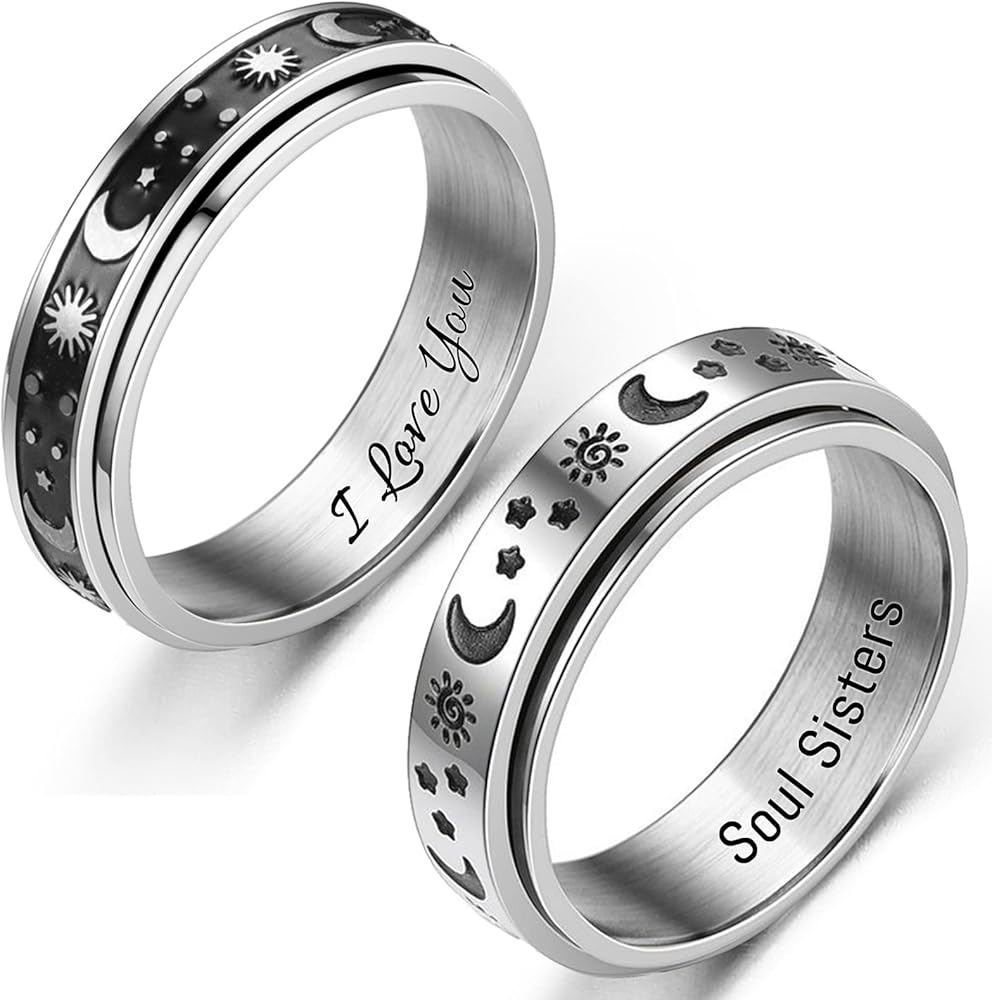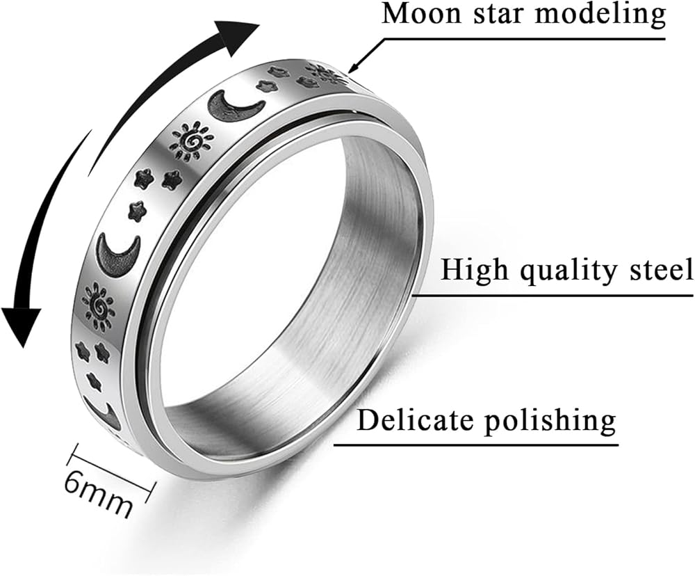 ✔️[High Quality Material] The surface of the anxiety ring is smooth and shiny, and it is made of high-quality titanium steel with a moon and star spinner. For your dearest friends, sister rings or friendship rings make a great jewelry option for women.
