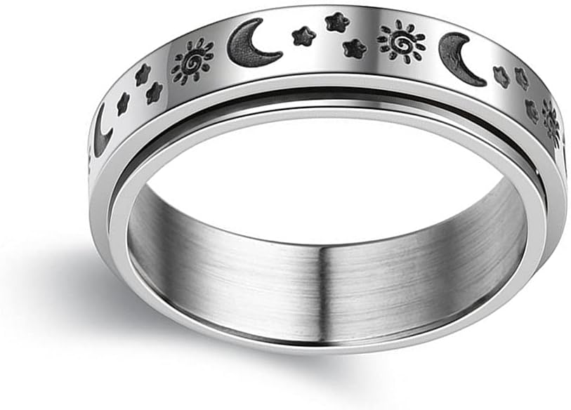 ✔️[Ideal Gift] Giving This enhong sun, moon, and star spinner ring is a great gift for family members and friends. It is perfect to give to couples as matching rings. For your anxious friends, these titanium stainless steel anxiety rings make the ideal present.