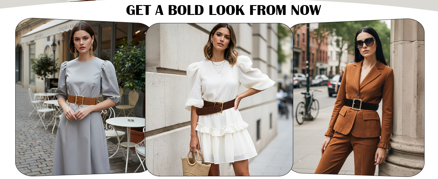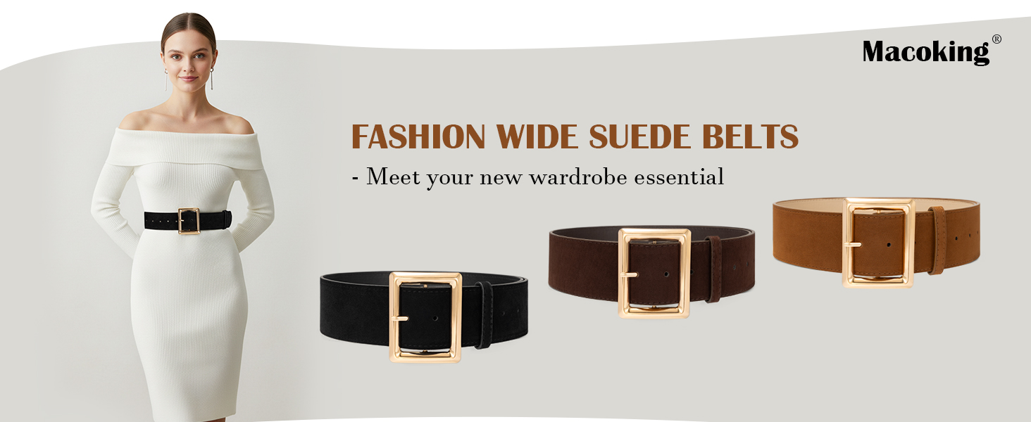 أحزمة من الجلد السويدي الفاخر للنساء: مصنوع من جلد سويدي صناعي فاخر لملمس مخملي، هذا الحزام الجلدي النسائي مميز بإبزيم مربع من سبيكة ذهبية لامعة، والذي يوفر مظهرًا أنيقًا ويضمن أناقة تدوم طويلاً.