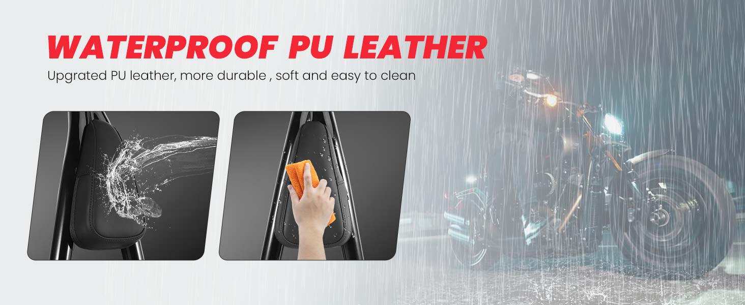 【Upgrade Backrest】This rear passenger backrest pad is made of upgrade waterproof LU leather, it is more durable and soft to the touch with patchwork design than others, stylish appearance, will not scratch easily like other poor quality backrest, than others; Built-in high density sponge will provide a better buffer and protect passengers‘ back and keep them comfortable even on rough road.
