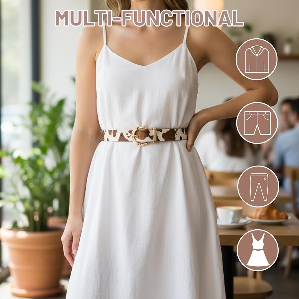 Versatile Wearing Occasions: This cow print belts for women pairs well with jeans for casual outings and dresses for special events; Ideal for festivals, rodeos, and social gatherings where western fashion is appreciated; The animal print belt for women transitions seamlessly from daytime casual to evening wear; Cowhide belt design works with various clothing styles from skirts to denim