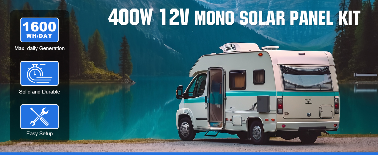 [Powerful Energy Generation]The Premium 400W Kit can produce an average of 1.6KWH of electricity per day (depending on sunlight availability). Each solar panel comes with a pair of 35 inches cables. By-pass diodes are pre-installed in waterproof IP-65 rated junction box to minimize power drop caused by shade and ensure excellent performance in low-light environments.