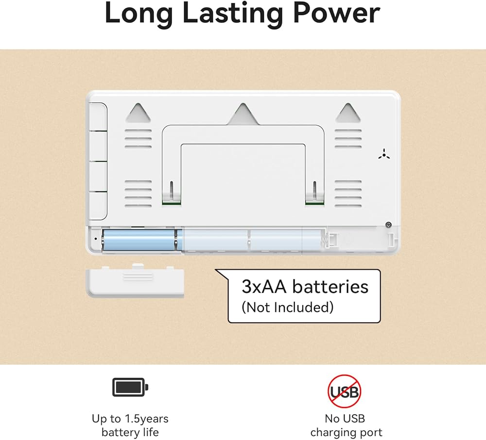 【𝟱𝟬𝟬+ 𝗗𝗔𝗬𝗦 𝗕𝗔𝗧𝗧𝗘𝗥𝗬 𝗟𝗜𝗙𝗘】Powered by advanced low-energy tech, desk clock battery operated runs for over 18 months. Ditch the tangled cords and messy outlets—experience true wireless freedom anywhere in your home.