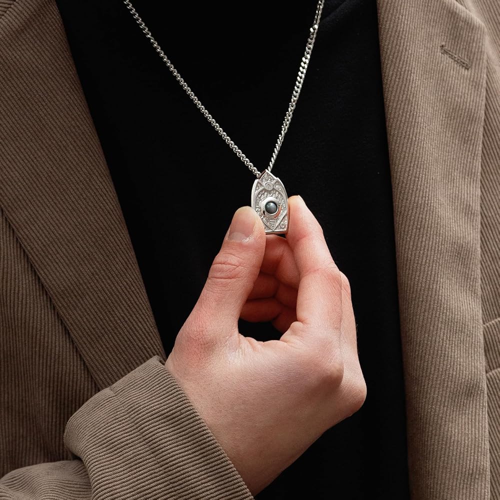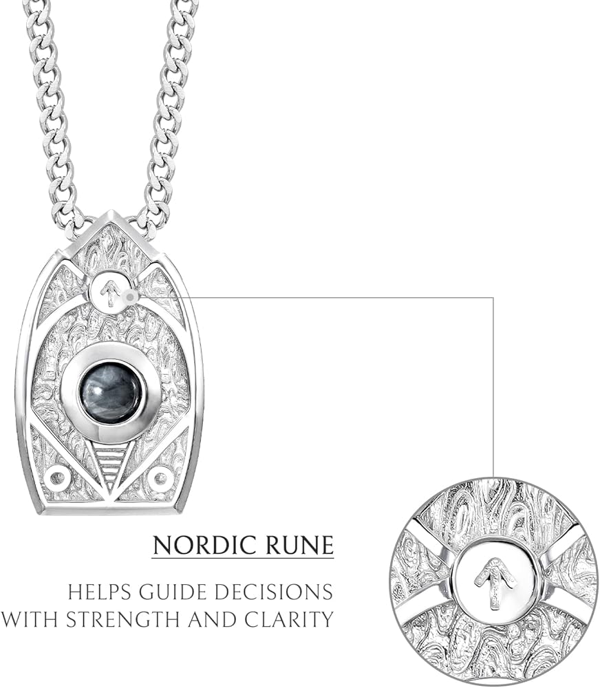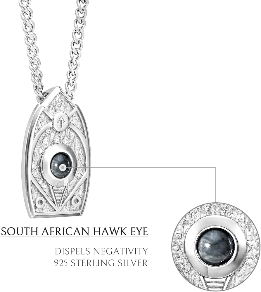 Exquisite Pendant: This striking men's necklace features a bold grey hawk's eye stone known for boosting confidence and clear thinking. The ancient Tiwaz rune at the top stands for bravery and fair judgment, inspired by Viking warriors. Made from solid sterling silver, this pendant combines natural crystal power with timeless masculine style - perfect for daily wear or special occasions.