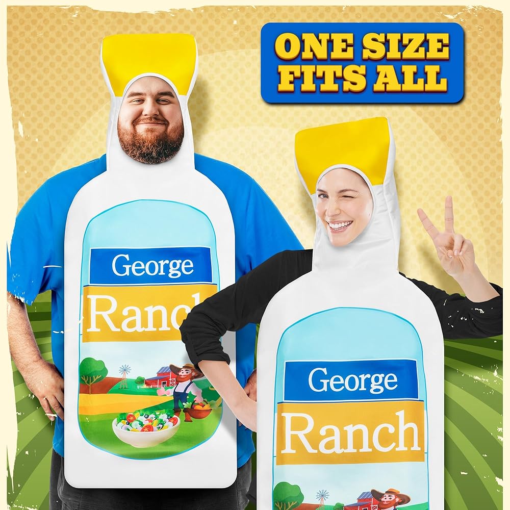 🥗OFFICIALLY LICENSED ultimate 2025 Ranch Costume for Halloween. Why not go all out with a ranch dressing costume, complete with a giant bottle costume? Pair it with a chicken wing costume or a vegetable costume adult for a hilarious food-themed group look! If you're feeling extra bold, mix things up with a condiment costume adult, like a relish costume, or go full snack mode in a flamin' hot costume.