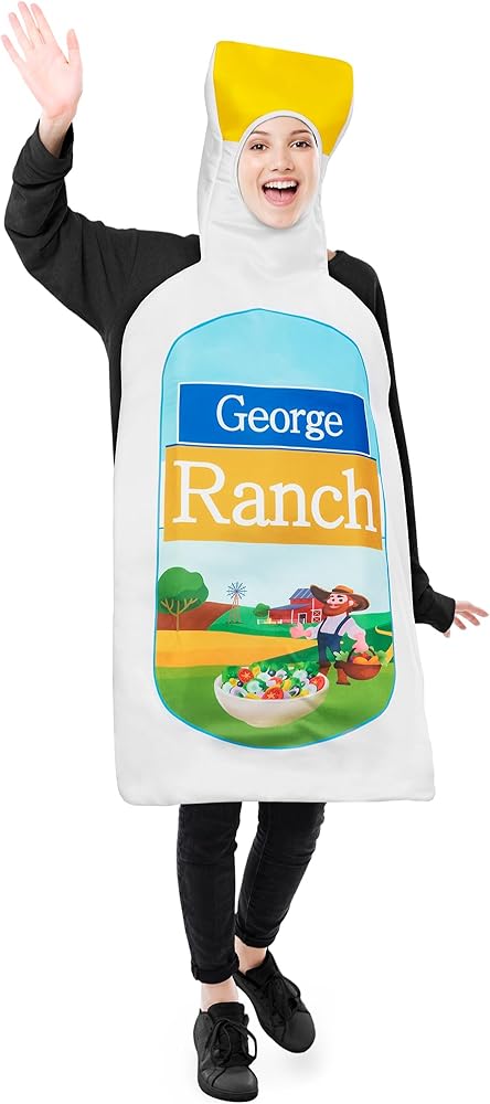 🐄 Ranch Costume Fun: This Halloween, embrace the creamy charm of a ranch costume, perfect for pairing with a food costume like a chicken wing costume or condiment costume. For a hilarious twist, go as a ranch bottle costume or ranch dressing costume, and don't forget the ranch dressing gifts to complete the look. These silly Halloween costumes are sure to stand out at any party!