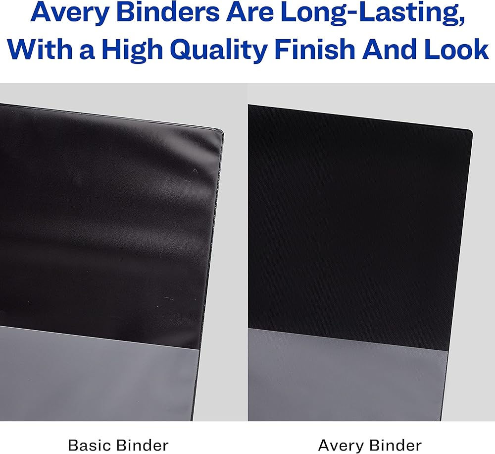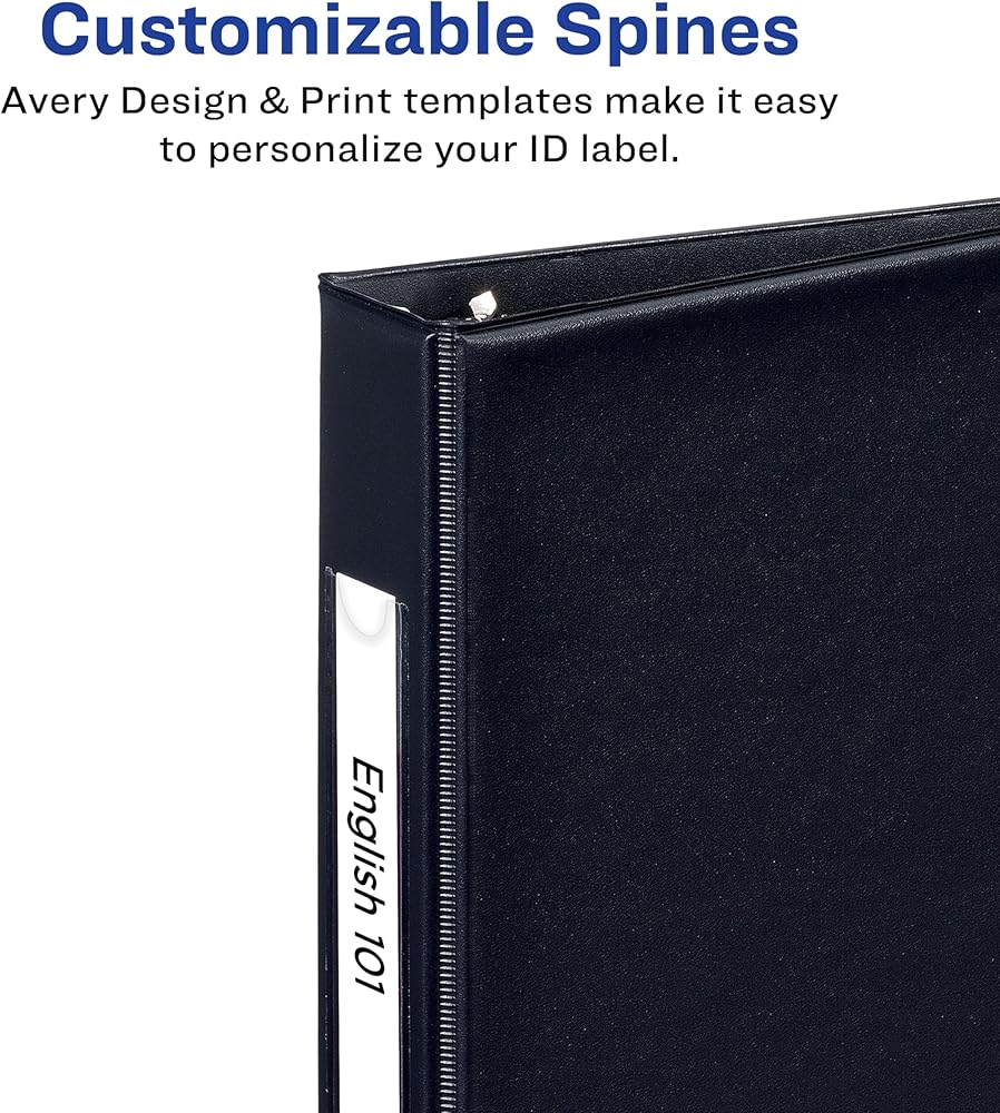This 2-pack of Avery 13456 Durable Mini 3 Ring Binders, designed to hold 5.5 x 8.5 paper, is a great choice for your organizational needs. These black 3 ring mini binders are efficient for those who require compact office binders, school binders, wedding binders, or recipe binders without sacrificing capacity. With a sturdy build, each 1 inch binder provides durability while maintaining a sleek, professional look appropriate for any workspace. Ideal for office, school, or personal use, this small binder accommodates a substantial amount of mini binder paper, making it versatile for various documents. Featuring round rings, each 3 ring binder securely holds up to 175 sheets, ensuring your papers stay in place. Two interior pockets provide additional storage for loose and unpunched pages, while the durable cover material offers a sturdy, protective exterior. The business card holder on the spine is a convenient addition, allowing you to keep your contact information readily accessible, making these binders must-haves for organized professionals.