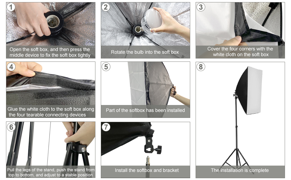 【2x Remote Control】 You can turn on and adjust the brightness and color temperature of the softbox lighting via the remote control. Please note that the photography lighting can be easily adjusted without being too close to the softbox. In addition, if you buy the softbox lighting kit, we will give an additional remote control in case one of the remote controls is broken.