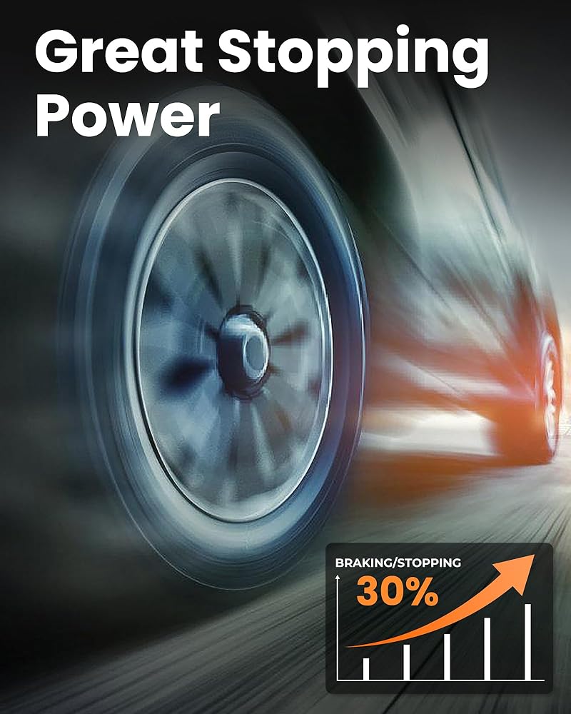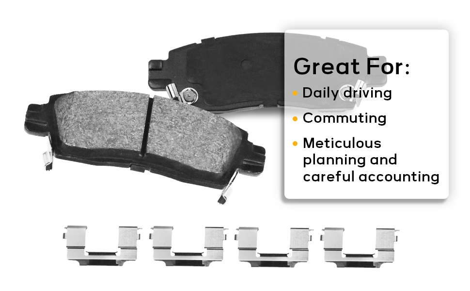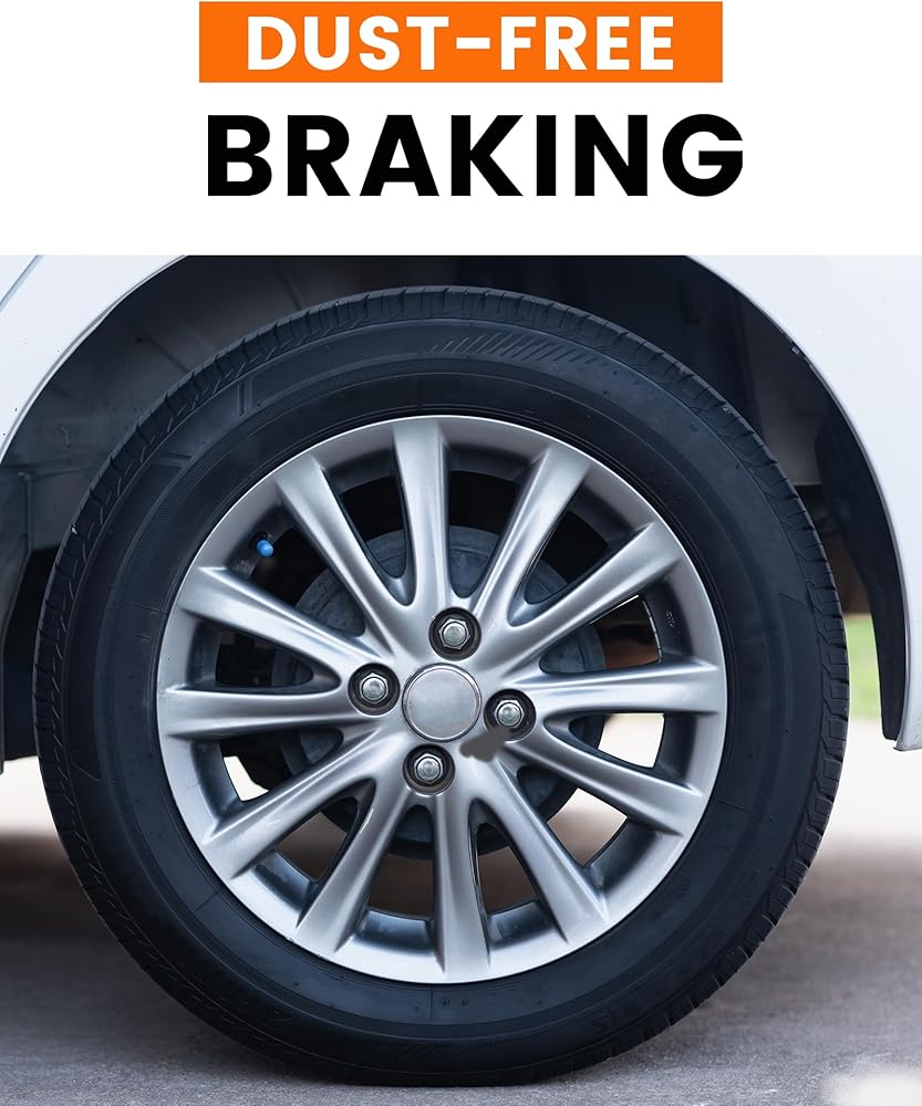[ Ceramic Formula & High Performance ] High-purity ceramic formula, the dust generated by brake pad friction is light gray-white, similar in color to the wheel hub, not easy to adhere, and easily washed away by rainwater. Nonmetallic materials fundamentally eliminate high-frequency noise and piercing screams caused by metal friction. Ceramic materials have excellent heat resistance and can provide reliable braking force even under continuous braking, ensuring long-term safety protection.