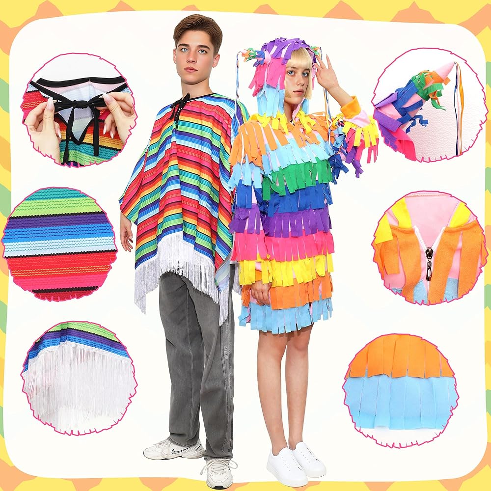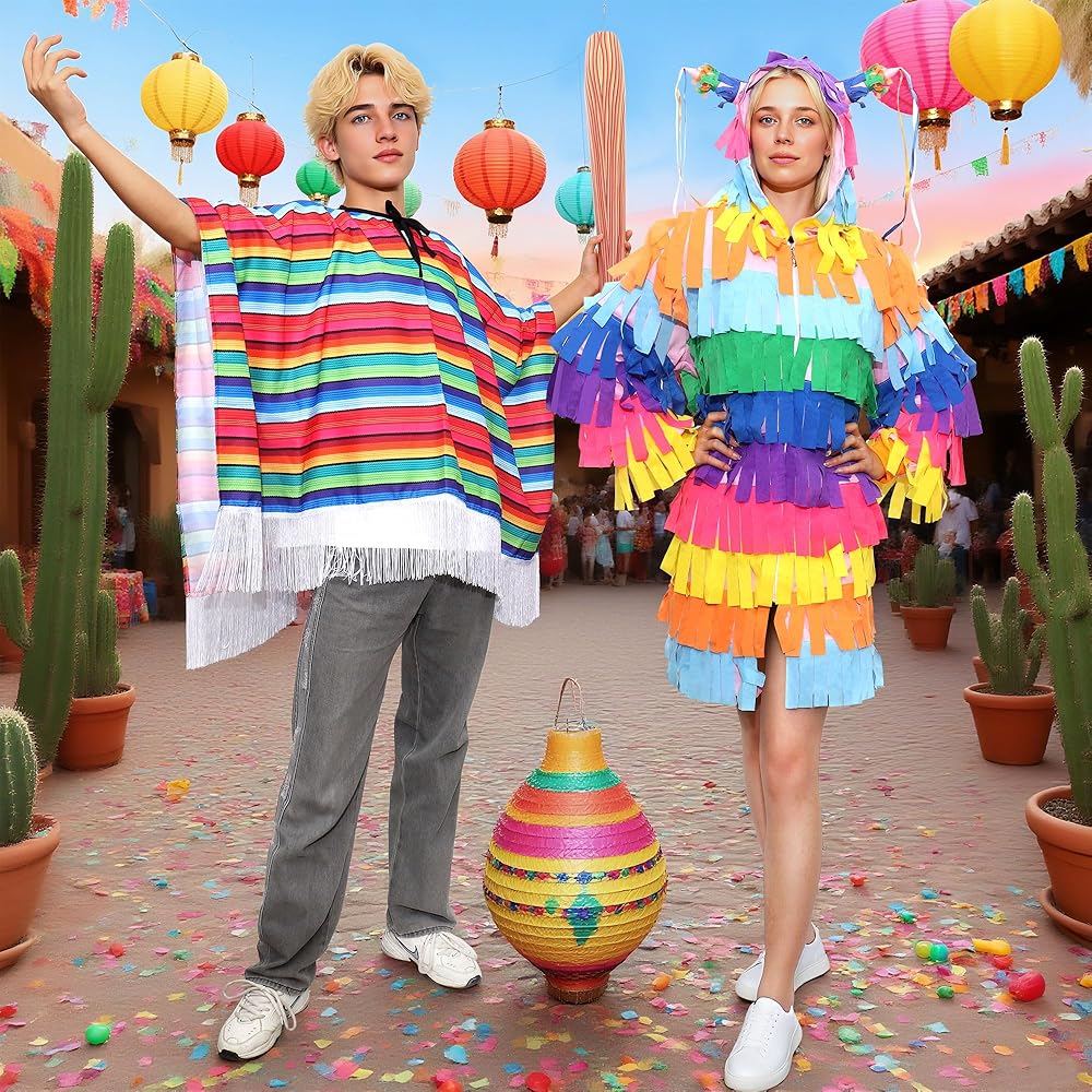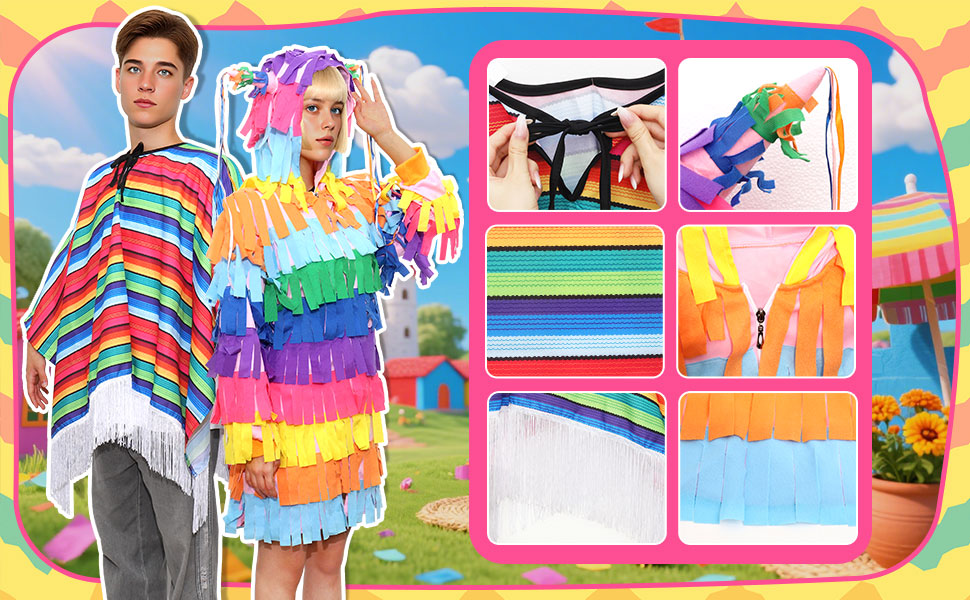 【Colorful Design】: Halloween pinata costume adult features colorful tassel designs and classic Mexican elements. The halloween pinata dress features a zipper design, making it easy to put on and take off. Wearing the couples costumes for halloween can bring you a pleasant feeling