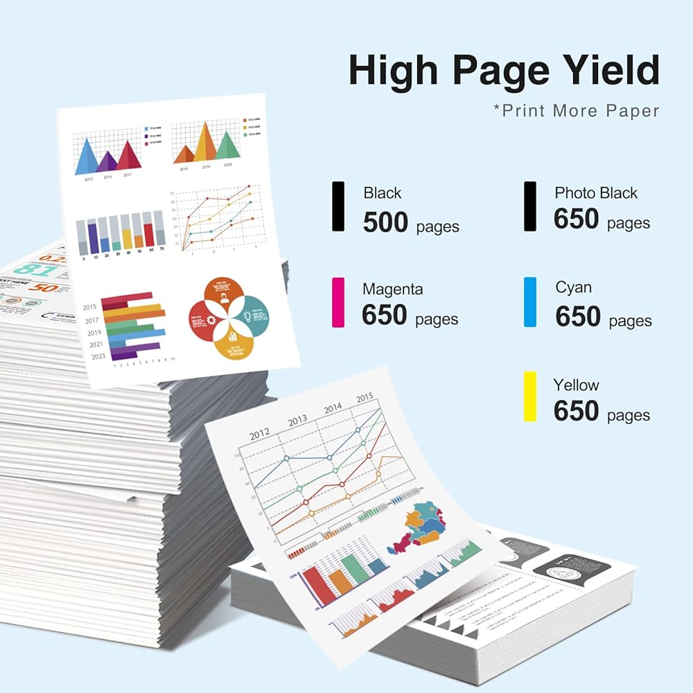 High Yield: replacement for 410XL black ink cartridge is 500 pages per cartridge, replacement for 410 410XL Photo Black Cyan Magenta Yellow ink cartridge is 650 pages per cartridge
