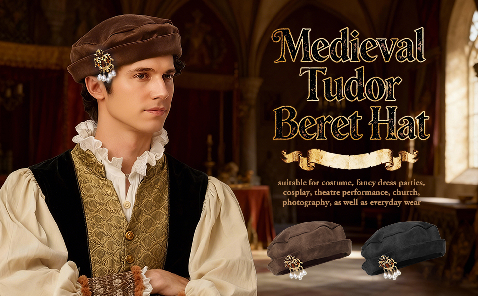 15th-century Headwear: The tudor beret Inspired by the headgear worn by medieval royalty, the Tudor period's distinctive upturned brim and brooch showing the elegance of the aristocracy