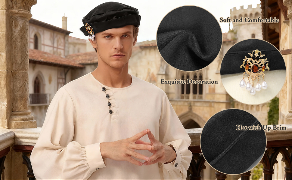 Multi-occasions: This medieval cap is suitable for fancy dress parties, drama, theatre performance, Halloween cosplay, masquerade party or daily wear