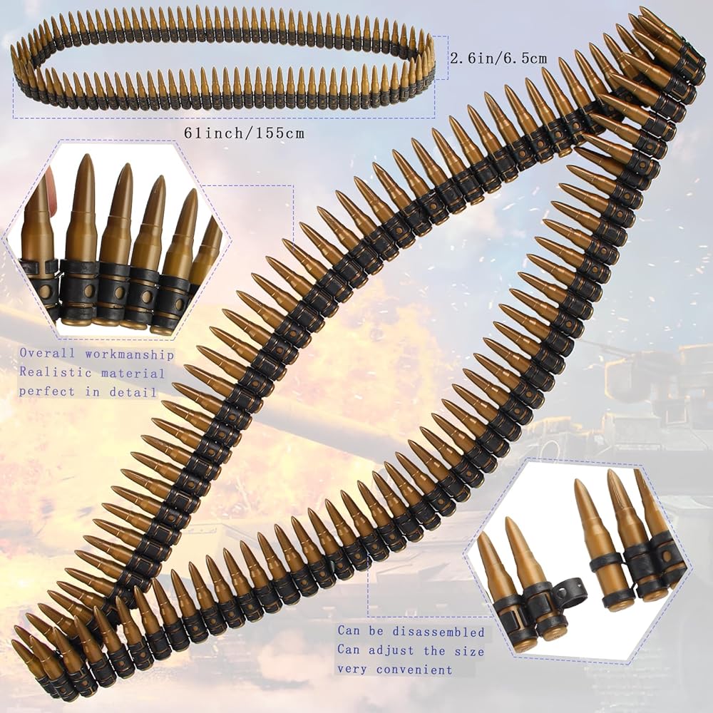 Authentic Styling: Red headband and wig replicate the iconic action hero hair and headgear, while the toy grenades and bullet belt add realistic tactical detail for a convincing look