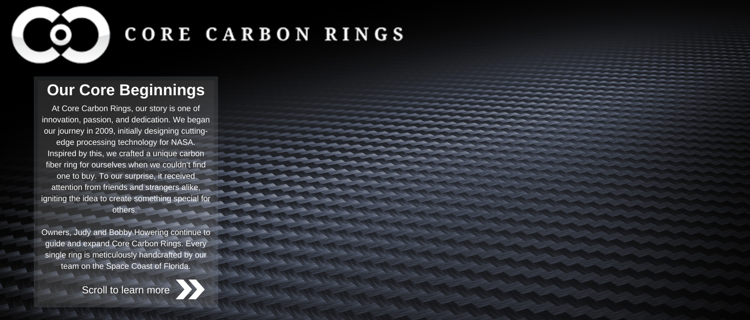 Proprietary Nasa Technology in Each Ring - Having decades of experience with carbon fiber and composites, we invented a unique process for NASA that we use in every Core Carbon Ring made. The process allows for an extremely strong, lightweight, comfortable, and truly unique ring.
