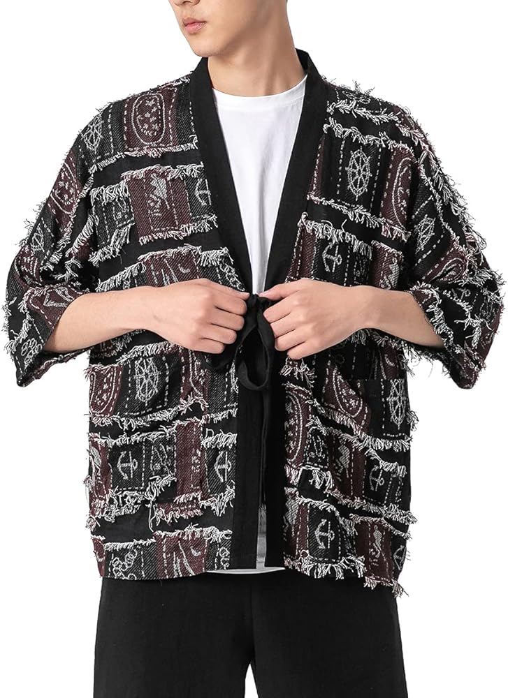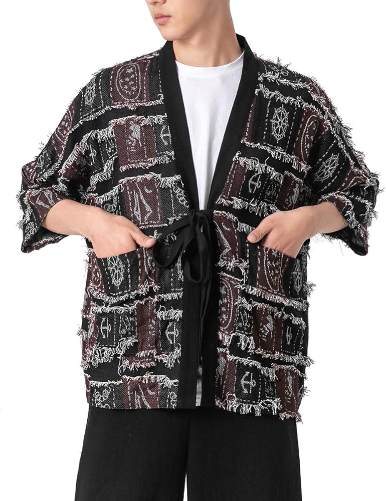Seidarise Men's Kimono Traditional Japanese Clothing Male Cardigan Noragi Jacket Yukata Coat Haori