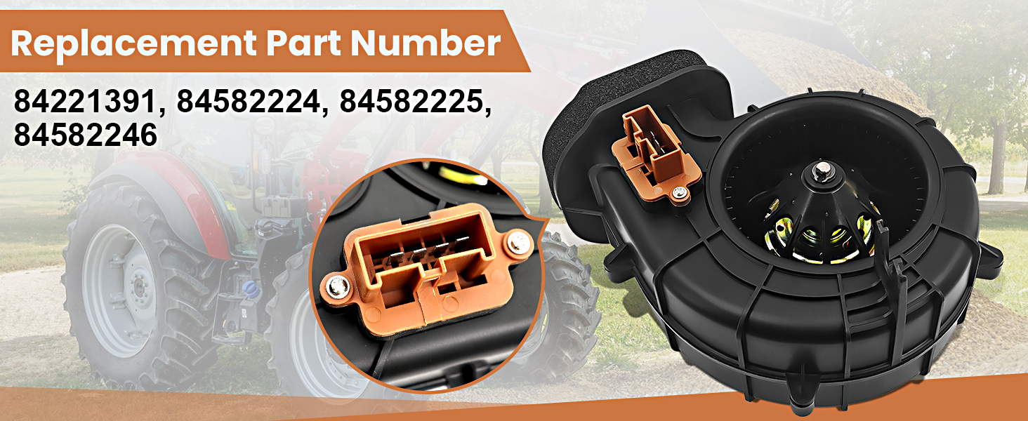 【Replacement Part Number】84221391, 84582224, 84582225, 84582246. The blower motor maintains cabin temperature, which improves operator comfort and is essential for productivity during extended workdays.