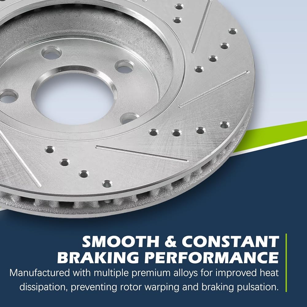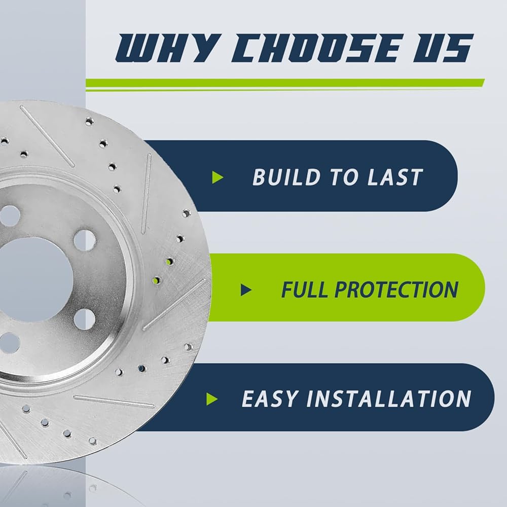 Rear Brake Rotors Compatible with 2010 Buick Allure, 2010-2016 Lacrosse, 2011-2017 Regal, Cadillac CT5 CT6 XTS, Chevy Camaro Impala Malibu Limited, Saab 9-5 Drilled Slotted Brakes, 12.4" Rotor