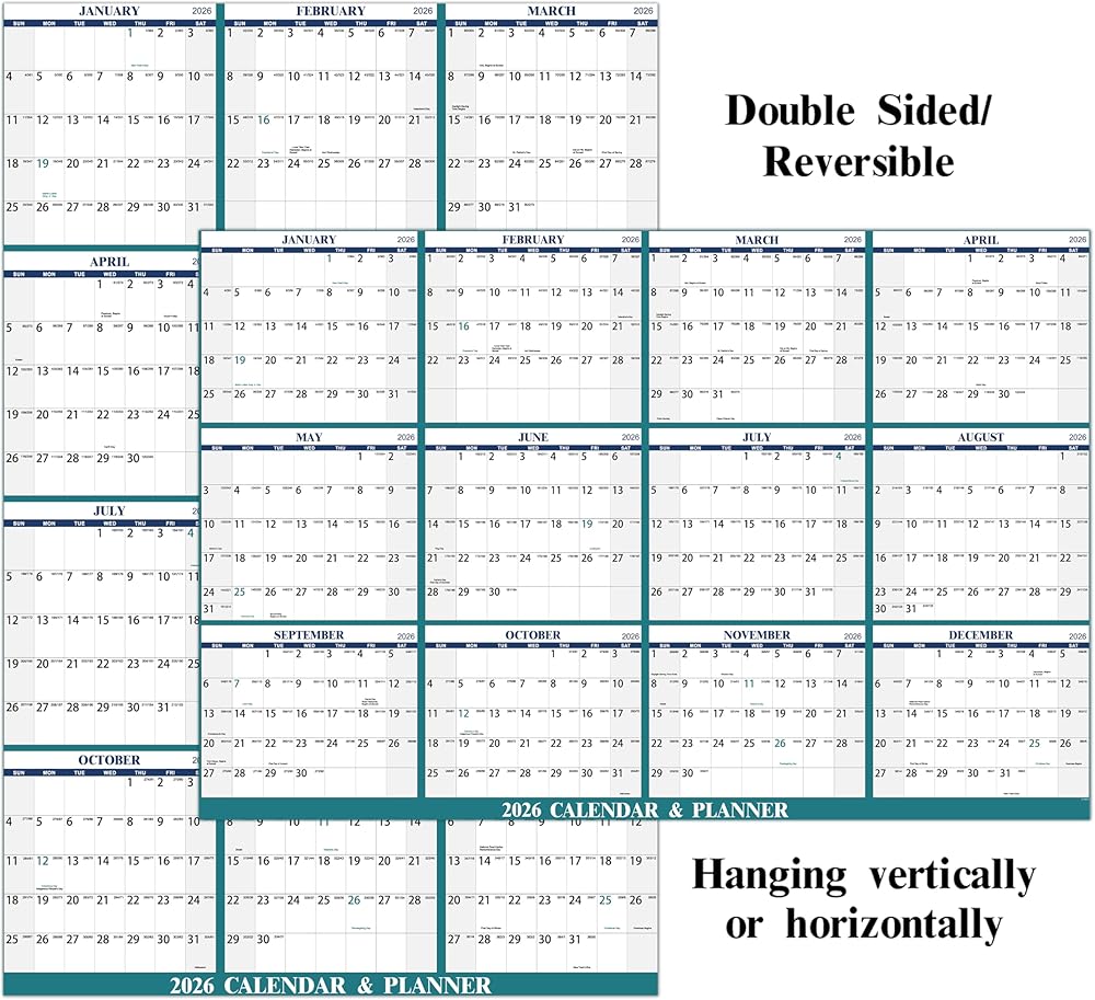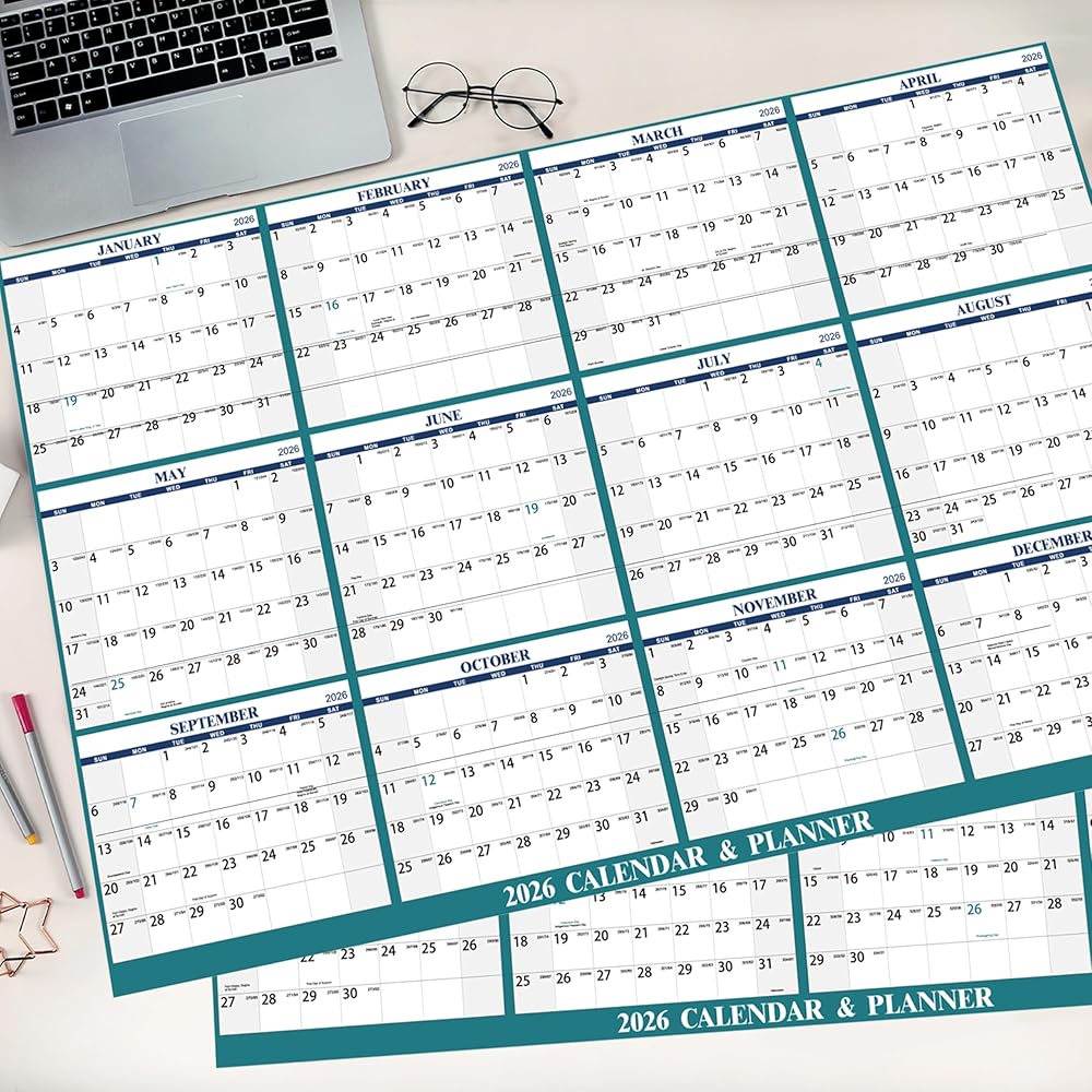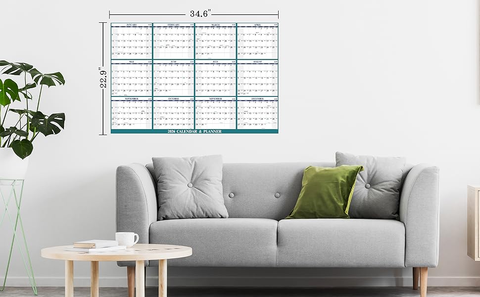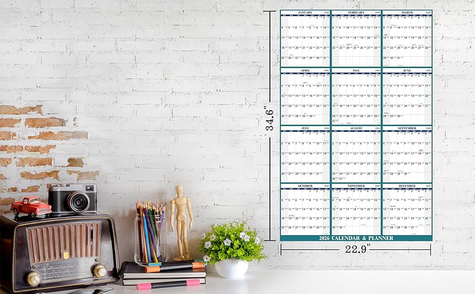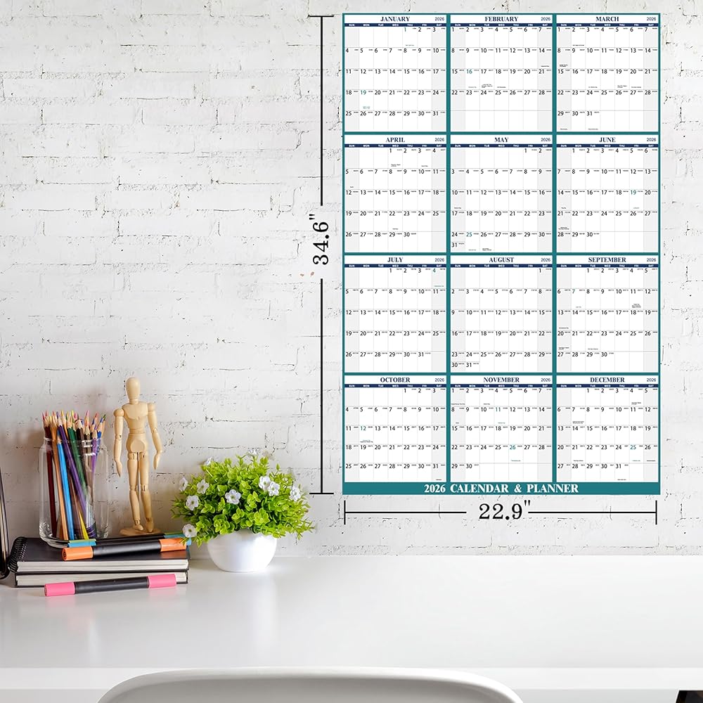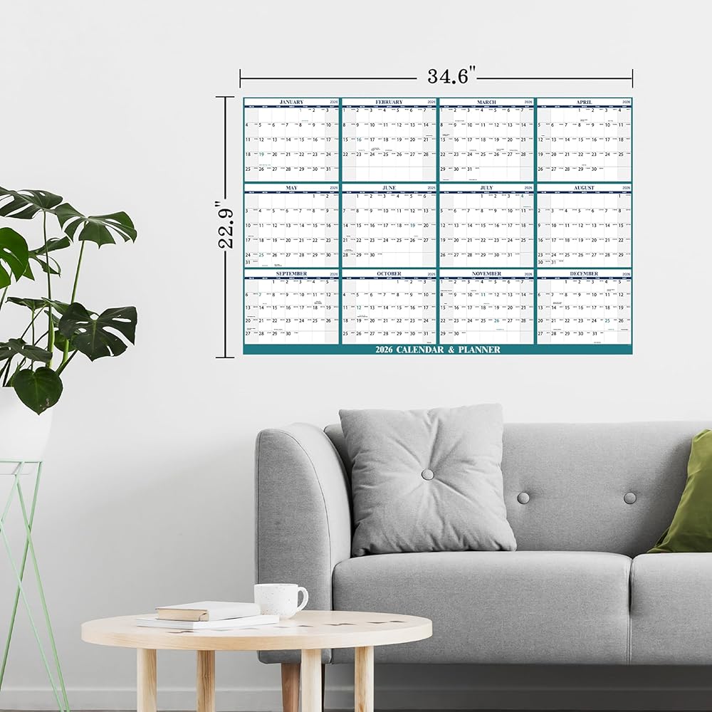 2026 Wall Calendar – The 2026 Yearly Wall Calendar covers the 12 months from January to December 2026. This 2026 wall calendar measures 34.6 inches x 23.0 inches (about 87.9 cm x 58.2 cm) (open), you can stick this 2026 calendar on your bedroom, office wall.