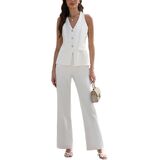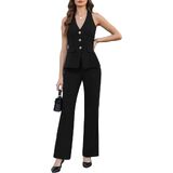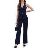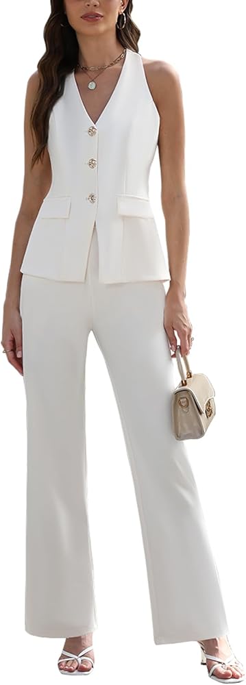 Dressy two piece pantsuits: This matching outfit for women includes a tailored solid vest with button closure, paired with matching straight wide leg pants for a coordinated, creating a polished look.The perfect fashion set for whether it's a busy workday, running errands after work, or enjoying a coffee, it makes you feel confident and comfortable.