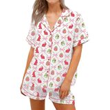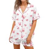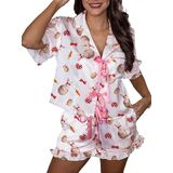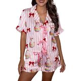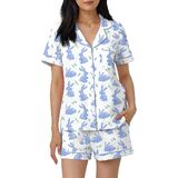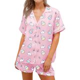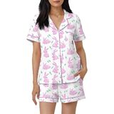 Women Easter Pajamas Set 2 Pieces Loungewear Suits Easter Eggs Bunny Print Short Sleeve Tops and Shorts Sleepwear Outfits