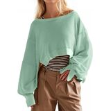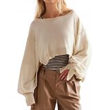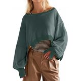 Features: Trendy clothes 2025 oversized fit with crew neck, long sleeves, split cuffs, length above hip, side slit, basic solid color, drop shoulders. The pullover design includes a elastic hem for modern appeal, making it versatile and flattering on various body types