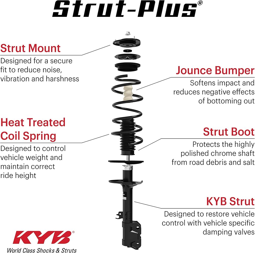 The KYB Strut-Plus is the best replacement strut assembly solution for vehicle specific, original equipment control and handling. KYB does not cut corners or take a one-size-fits-all approach when designing and manufacturing the Strut-Plus. Unlike competitors, KYB manufactures corner-specific part numbers to help restore designed performance on your vehicle. Consider this, a strut assembly handles vehicle weight, determines ride height, acts as the steering pivot, controls vehicle stability and can affect a vehicle's electronic crash avoidance systems. Don't trust a part designed to fit multiple vehicles and don't trust anything less than KYB.