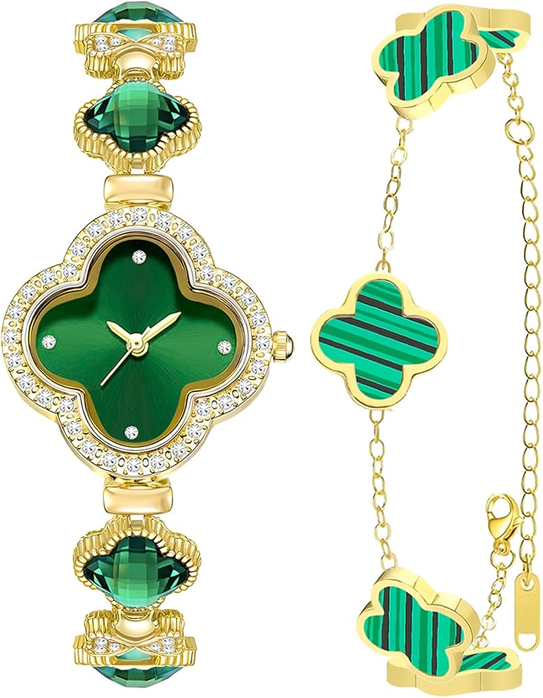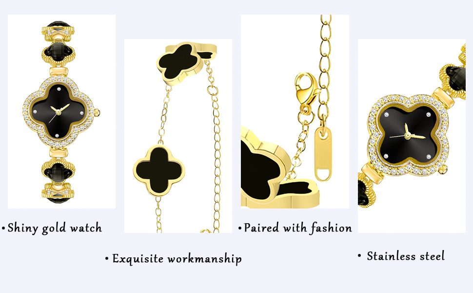 Unique design: Our gold watch bracelet features a four-leaf clover design, which symbolizes good luck, love, health, wealth, and happiness. The four-leaf jewelry is specially designed for you, you can wear them as a whole or use them separately to match different clothes. Wearing it every day will always bring you good luck