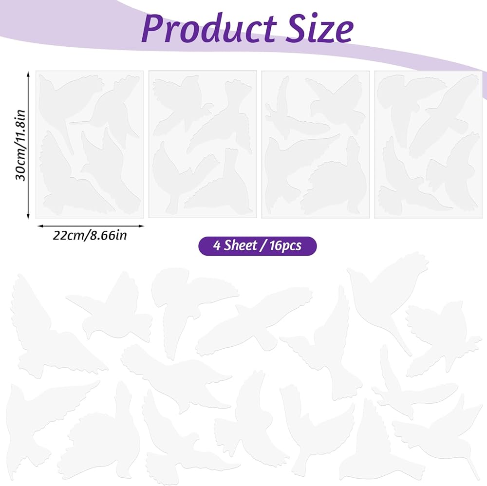 16PCS Window Decals for Bird Strikes, Anti-Collision Bird Clings for Glass Windows, Hummingbird Window Strike Prevention Stickers Films, Birds Deterrents for Outside, Glass Decorations