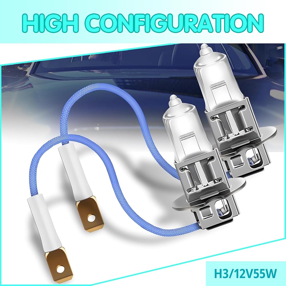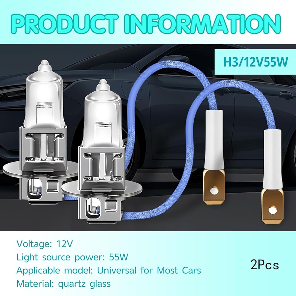 Product Details: You will receive 2 H3 car halogen bulbs from the package, and their lighting color is white. Power 55 W, voltage 12 V. Please check the product information carefully before placing an order to ensure a perfect fit.