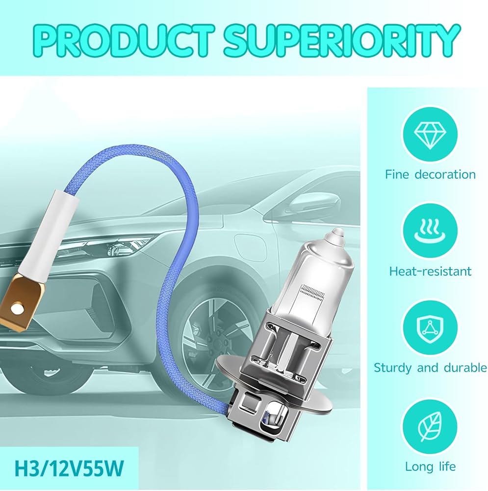 Durability: This H3 bulb adopts quartz glass lamp shell, which is durable and not easy to break, resistant to high and low temperatures, can be used in various harsh environments, not easy to age, and help you reduce the trouble of frequent bulb replacement.