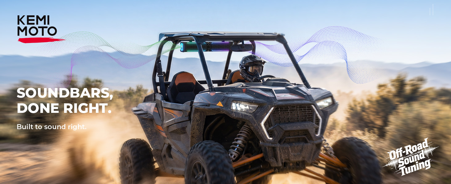 Seamless Connectivity, Immersive Sound: Control music, volume, lights, and power effortlessly in one app. The SMA port boosts BT range and stability in tough environments. Featuring USB, AUX input/output, KEMIMOTO Midnight UTV soundbar offers flexible power and device connectivity. Elevate your ride with immersive audio and a next-level atmosphere