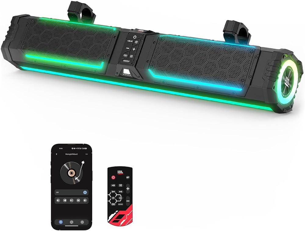 Light Up Your Ride: KEMIMOTO Midnight 70Gen2 UTV Sound Bar brings the party with 230+ dynamic lighting modes—pulse to the beat, flash, fade, or glow. Sync LEDs to your music in Colorful Beats Mode. Ride, vibe, and see clearly—anytime, anywhere