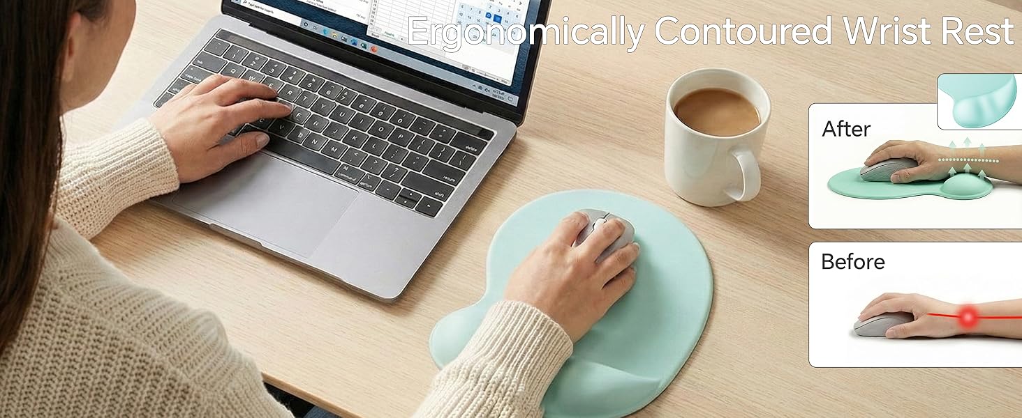 Gel Cushion for Enhanced Comfort: The wrist rest is filled with soft gel to offer superior comfort and effective support, helping to alleviate wrist strain that can lead to repetitive motion disorders.
