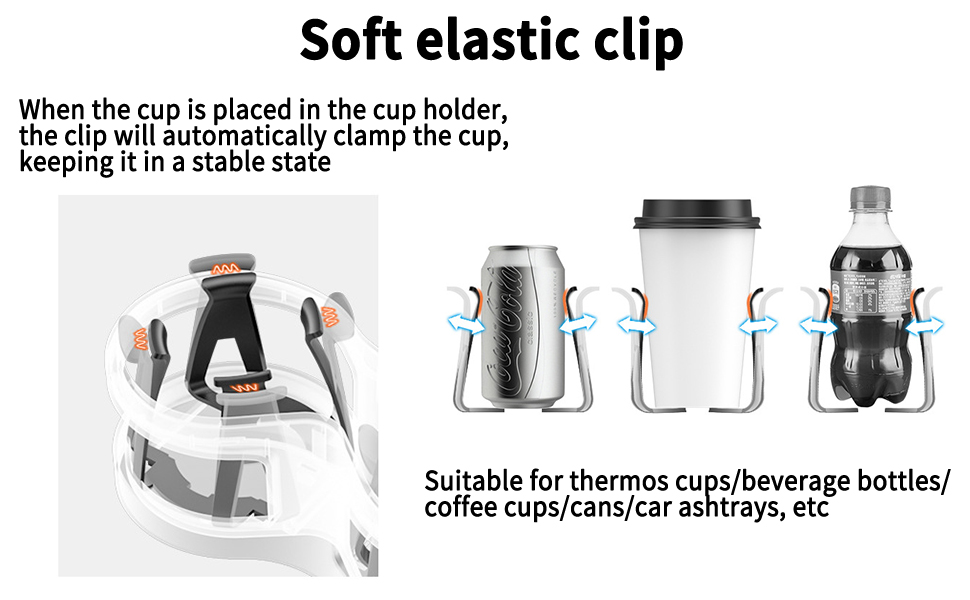 【Strong and Stable Cup Holder】Cup holder extender holder for car is made of ABS plastic, provides high strength and better impact resistance.The elastic clip inside the cup holder provides additional stability, automatically clamping the cup when it is placed down