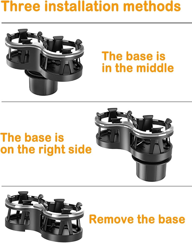 【Detachable base】The base of the cup holder is detachable, and there are two installation methods for the base: on the left or in the middle. Alternatively, you can omit the base and install the cup holder onto the armrest box