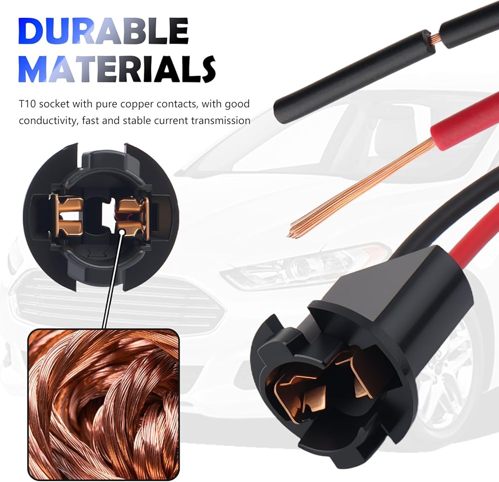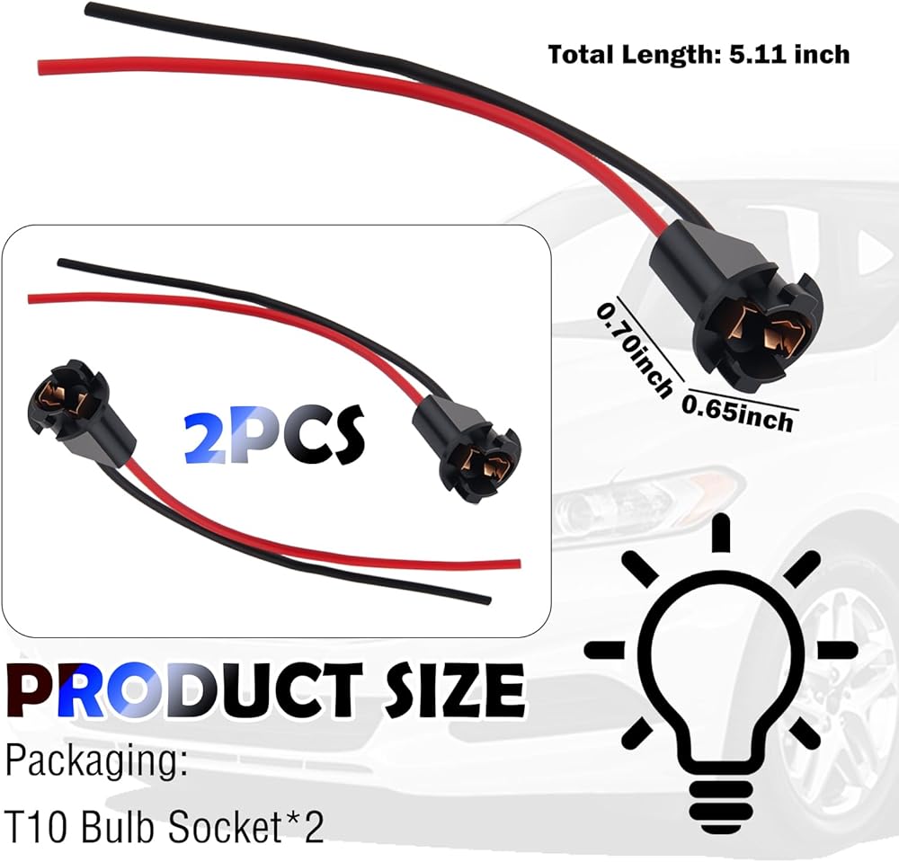 • Universal Design: Specifically designed for T10 bulb, universal design, T10 bulb socket is suitable for most vehicles, suitable for brake lights, tail lights, turn lights, etc, with wiring harness, to provide firm support for the bulb to avoid it from loosening, to keep the bulb stable working