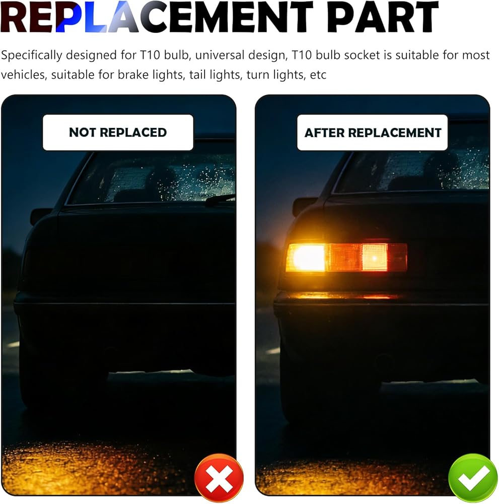 • 2PCS Kit: You will receive 2pcs T10 bulb sockets, match the replacement or spare needs of the lights on both sides of the vehicle, no matter the original sockets are aging, broken and need to be replaced, or bulb modification and upgrading, it can be easy to meet, your car essentials